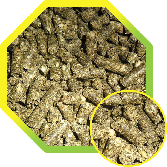 Вологість: макс. 15% Білок: мін. 14% Жир: макс. 10% Зольність: макс. 7%
